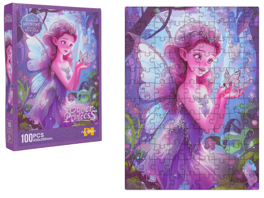 Ez a 100 darabos lila tündér kirakós készlet három éves kortól ajánlott. Összerakás után egy 43 cm x 29 cm-es, csillámos elemekkel díszített képet alkot. A kirakó összerakása megtanít minket a koncentrációra és az egyetlen dologra való összpontosításra. Segít levezetni a stresszt és elfelejteni a problémákat. A kirakók megtanítanak minket a logikus gondolkodásra, a formaillesztésre, és jótékony hatással vannak a vizuális memóriánkra.Kirakós funkciók:- hároméves kortól gyermekek számára,- 100 elem,- elrendezés után egy lila tündér képe készül, amelyet például a falra akaszthatunk,- csillogó elemeket tartalmaz,- megtanítanak minket koncentrálni, egy dologra koncentrálni,- ellazulnak és megnyugszanak, lehetővé téve, hogy elfelejtsd a problémákat,- megtanítjuk a formák párosítását,- pozitív hatással vannak a vizuális memóriánkra,- masszívan elkészített, színes.Méretek: