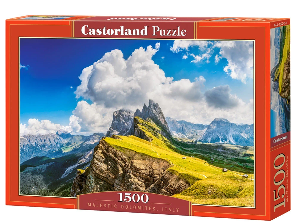 1500 darabos kirakó ndash; Fenséges Dolomitok, Olaszország (C-152247-2)Csodálja meg az olasz Dolomitok lélegzetelállító tájait a fenséges Dolomitokkal. Ez a gyönyörű készlet 1500 precízen kidolgozott darabból áll, amelyek összerakva egy figyelemre méltó, 68 x 47 cm-es képet alkotnak, amely a fenséges hegycsúcsokat teljes pompájukban mutatja be.A kirakók összerakása nemcsak remek szórakozás, hanem a kikapcsolódás és a készségek fejlesztésének egyik módja is.Ez a szenvedély:támogatja a koncentrációt és a türelmet,fejleszti a megfigyelőképességet és a képzelőerőt,segít megnyugodni és csökkenteni a stresszt.A kirakós játékok kiváló minőségű kidolgozásukról, tökéletes illeszkedésükről és élénk színeikről ismertek, így a kész kép igazi műalkotás. A márka összes terméke megfelel a nemzetközi minőségi és biztonsági előírásoknak.Tökéletes választás a kirakós játékok és a hegyvidéki tájak szerelmeseinek ndash; tökéletes ajándékötlet vagy egy csendes, pihentető estére otthon.