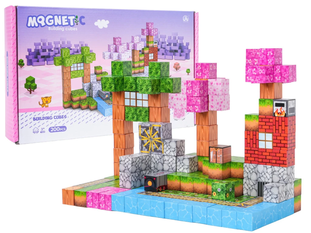 200 darabos színes, mágneses 3D-s kockákból álló készlet három éves kortól gyermekek számára. A mágneses kockák a legmagasabb minőségű anyagokból készültek, élénk színekben. Különböző szerkezetek építésére használhatók. A neodímium mágnesek nagyon szilárdan tartanak, stabil szerkezetet hozva létre. A kockák egymásra rakása elősegíti a logikus gondolkodást és fejleszti a gyermekek kézügyességét.Jellemzők:- hároméves kortól gyermekek számára,- 200 darabos, színes 3D-s kockából álló, gazdagon felszerelt készlet,- az élénk színek vonzzák a gyermek figyelmét és játékra ösztönzik,- számos tervezési lehetőség,- biztonságos, kiváló minőségű anyagokból készült,- beépített szilárd neodímium mágnesek,- a tökéletes ajándékcsomag.Méretek:- kb. 2 cm x 2 cm x 2 cm-es kocka,- csomagolás kb. 28 cm x 5 cm x 17,2 cm.