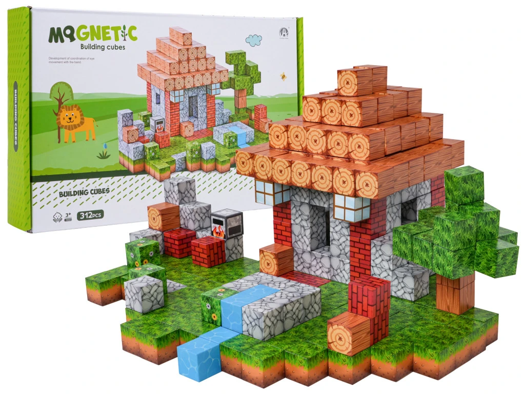 312 db színes 3D mágneses kockából álló készlet 3 éves kortól gyermekek számára. A mágneses kockák a legkiválóbb minőségű anyagokból készültek, élénk színekben pompáznak, és házat és kertet ábrázoló rajzokkal vannak ellátva. A kockák fát, téglát, márványt, füvet vagy fákat utánoznak. Színes házat építhetsz belőlük. A neodímium mágnesek nagyon szilárdan tartanak, stabil szerkezetet hozva létre. A kockák egymásra rakása elősegíti a logikus gondolkodást és fejleszti a gyermekek kézügyességét.Jellemzők:- 312 színes 3D kockából álló, gazdagon felszerelt készlet,- az élénk színek vonzzák a gyermek figyelmét és játékra ösztönzik,- biztonságos, kiváló minőségű anyagokból készült,- beépített szilárd neodímium mágnesek,- a tökéletes ajándékcsomag.Méretek:- kb. 2 cm x 2 cm x 2 cm-es kocka,- csomagolás kb. 33,5 cm x 5 cm x 21 cm.