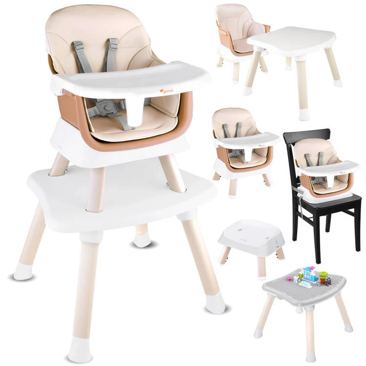 6 az 1-ben állítható etetőszék szett bézs színbenEz az etetőszék egy 6 az 1-ben készlet, amely 6 hónapos kortól ajánlott. Modern stílusú, moduláris bútordarab bármely gyerekszobába, nappaliba vagy konyhába beilleszthető. Többféle felhasználási lehetőségének köszönhetően az étkezőasztalhoz, valamint a játszósarokhoz is illeszkedik. Kényelmes, megfelelően kontúrozott ülés, ötpontos biztonsági övek, blokád a székről lecsúszás ellen. Az ülés borítására légáteresztő, könnyen tisztítható anyagból készült. A bútor kivehető, könnyen tisztítható tálcával rendelkezik. A szék lábai csúszásgátló párnákkal vannak ellátva.