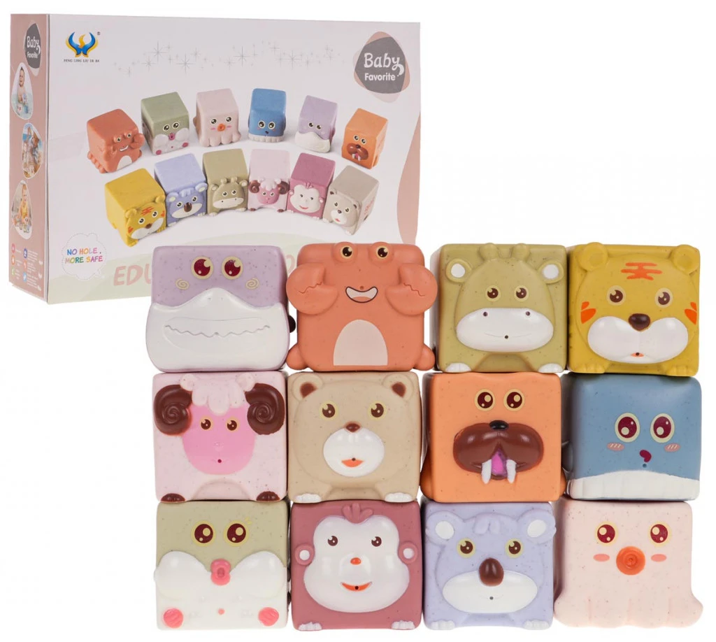 12 színes szenzoros kockából álló készlet állatokkal, babáknak 6 hónapos kortól.