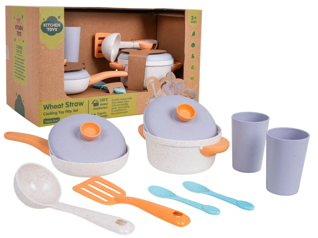 Bioműanyagból készült edénykészlet,három éves kortól alkalmas gyermekek számára. A készlet 10 darabból áll. Tartalmaz egy fedővel ellátott serpenyőt, egy fedővel ellátott fazekat, egy merőkanalat, egy spatulát, két kanalat és két bögrét. Ez a készlet végtelen játéklehetőséget kínál. A készlet anyaga gyermek- és környezetbarát. 120deg;C-on (250deg;F) sterilizálható és újrahasznosítható.Készlet jellemzői:- a legmagasabb minőségű ökológiai anyagokból készült,- hároméves kortól biztonságos gyermekek számára,- 10 darabos készlet,- serkenti a gyermek érzékszerveit.Méretek:- fedős serpenyő kb. 17 cm x 10 cm x 5 cm,- fedővel ellátott edény kb. 12,5 cm x 10 cm x 7,5 cm,- merőkanál kb. 13,5 cm x 5 cm x 9 cm,- spatula kb. 13,5 cm x 4,2 cm,- kb. 8,5 cm x 2 cm-es kanál,- kb. 6,5 cm x 4,5 cm-es csésze,- csomagolás kb. 28,3 cm x 16 cm x 15,3 cmA készlet tartalma:- fedővel ellátott serpenyő,- fedővel ellátott edény,- merőkanál,- spatula,- 2x teáskanál,- 2 db pohár.