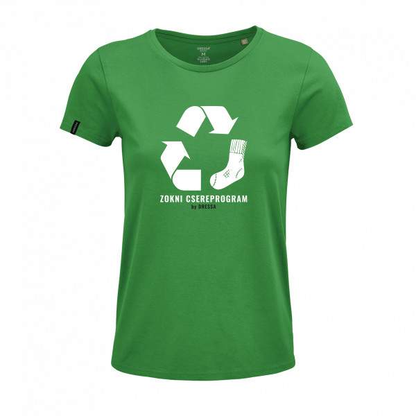 Ha te is a Zokni Csereprogram táborát erősíted akkor jó helyen jársz. Vedd fel a Dressa Zokni Csereprogram feliratos női környakú rövid ujjú biopamut pólót zöld színben, könnyed anyaga miatt kiváló lehet melegebb időkben is.