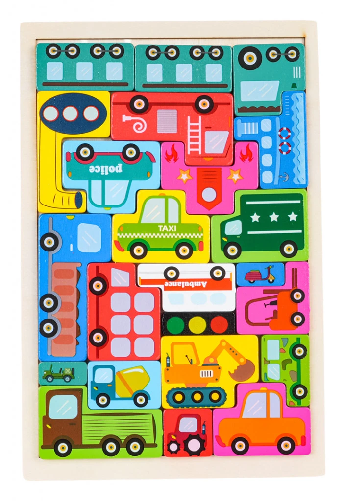 Fából készült jármű kirakó három éves kortól gyermekeknek. A készlet tartós fából készült és gyermekbarát festékekkel festett. A gyerekek feladata a formák összeillesztése és az összes blokk elrendezése. Ez a játék fejleszti a logikus gondolkodást, és megtanítja a formákat és a színeket.Jellemzők:- három év feletti gyermekek számára alkalmas szett,- megbízható fából készült,- nincsenek éles végei,- megtanítja a formák párosítását,- fejleszti a logikus gondolkodási képességeket.Méretek:- kb. 22,5 cm x 15 cm x 0,5 cm-es alap a blokkok elrendezéséhez,