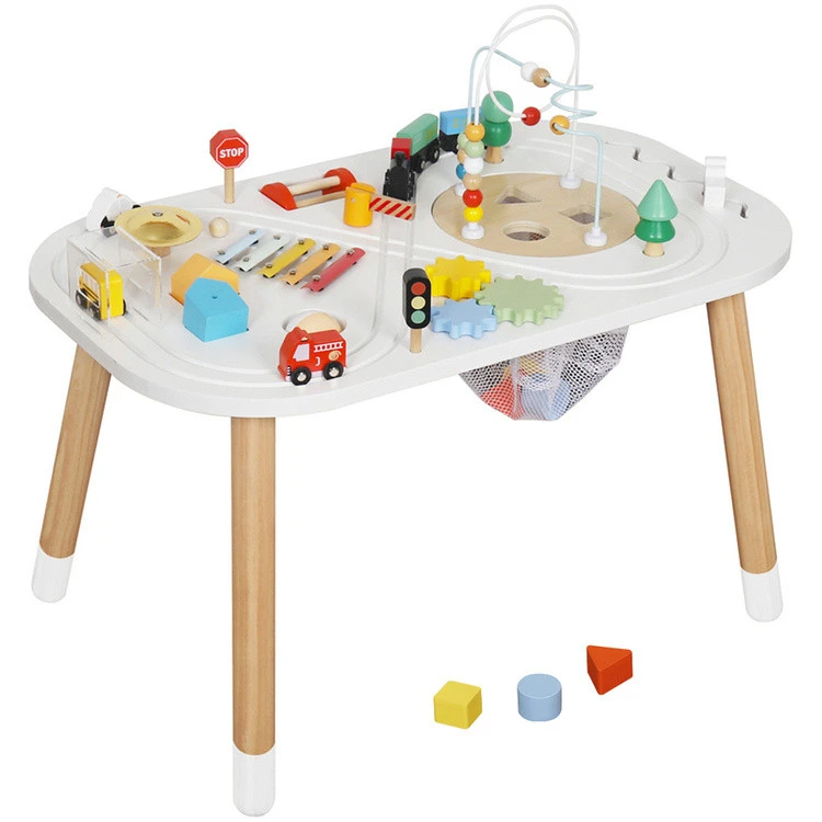 A fa interaktív asztal cintányérokkal és autópályával egy nagyszerű játék, amely ötvözi a tanulást a szórakozással, lenyűgöző élményeket nyújtva a gyerekeknek. A tömör fából készült asztal melegséget és tartósságot áraszt, biztonságos helyet teremtve a kisgyermekek motoros és érzékszervi készségeinek felfedezéséhez és fejlesztéséhez.