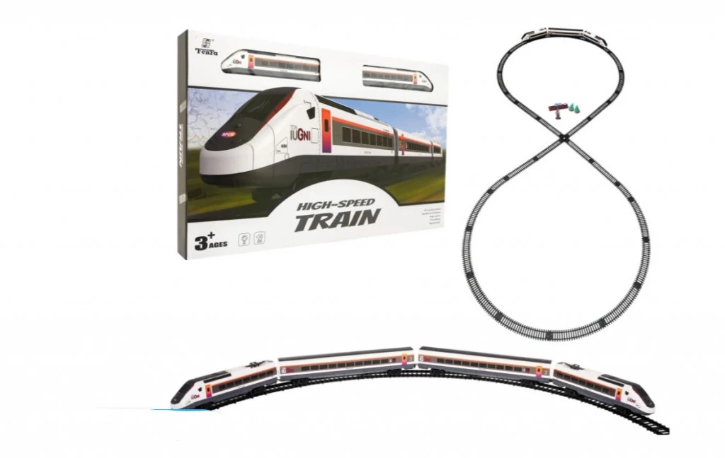 Hatalmas vasúti pálya két mozdonnyal – fény és hangeffektusokkalA készlet két mozdonyból és két kocsiból áll. Az egyik mozdony 2 x AA 1,5 V-os elemmel működik, az elemeket nem tartalmazza. Menet közben hallani lehet a vonat jellegzetes hangjait és a mozdony elején kigyullad a piros LED. A készletben tetszőleges kombinációban elhelyezhető pályák találhatók. A sínek könnyű csatlakoztatási móddal rendelkeznek, ami biztonságossá és tartóssá teszi a használatot.Méretek – mozdony kb. 24 cm x 5,8 cm x 4,5 cm,- kocsi kb. 32,5 cm x 5,8 cm x 4,5 cm,- a sor teljes hossza kb. 114 cm,- mintapályák kb. 240 cm x 101 cm,- csomag kb 68 cm x 42 cm x 6 cm