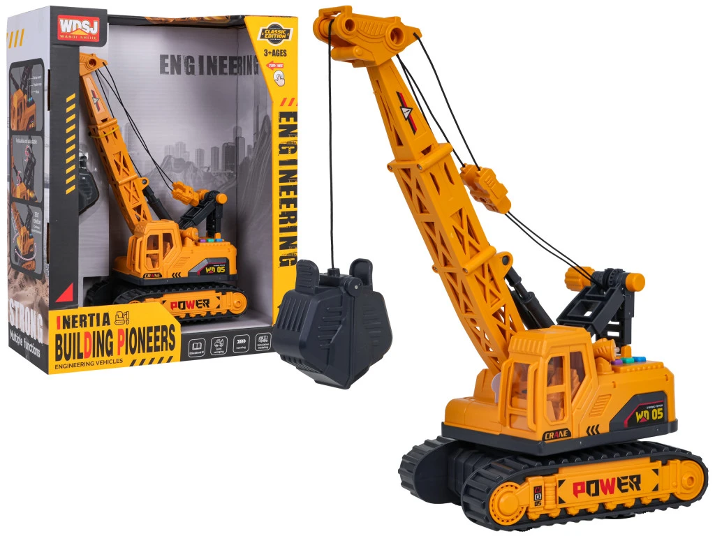 Interaktív lánctalpas daru, 1:16 méretarányban, mozgatható részekkel, három éves kortól alkalmas. A legmagasabb minőségű anyagokból, aprólékos odafigyeléssel készültdaru gémje manuálisan vezérelhető, a markoló pedig leengedhető és felemelhető rakodáshoz. A gép alapja 360 fokban elforgatható. A tetőn található gombok aktiválják a hang- és fényvezérlőket. A daru alján kis motoros kerekek találhatók. A játék 3 db AG13 elemmel működik (tartozék).Jellemzők:- hároméves kortól gyermekek számára alkalmas játék,- előadóterem 1:16,- a legjobb minőségű anyagokból készült,- manuálisan emelhető és süllyeszthető gém,- manuálisan emelhető és süllyeszthető megfogó,- 360 fokban forgó talp,- hangeffektek: vidám dalok, géphangok,- fényeffektek, kb. egy villogó fény,- elsőkerék-meghajtás.Méretek:- daru kb. 15 cm x 11 cm x 32 cm (teljesen felemelt gém mellett) és kb. 33 cm x 11 cm x 20 cm (teljesen leengedett gém mellett),- csomagolás kb. 36 cm x 28 cm x 14 cm