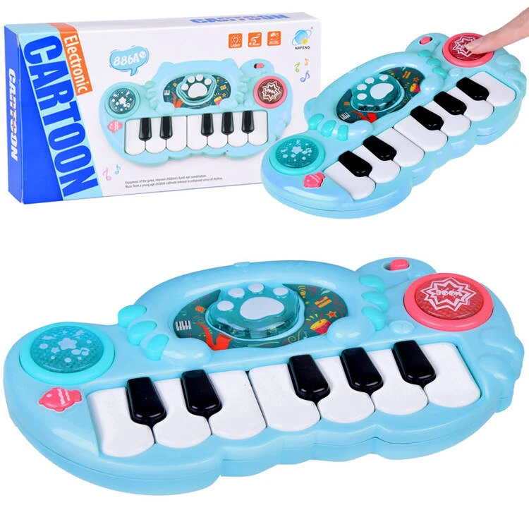 A játék olyan elemekkel van felszerelve, amelyek a billentyűk precíz lenyomásával fejlesztik a gyermek kézügyességét.A zongora méretei: 22 x 12 x 3,5 cm