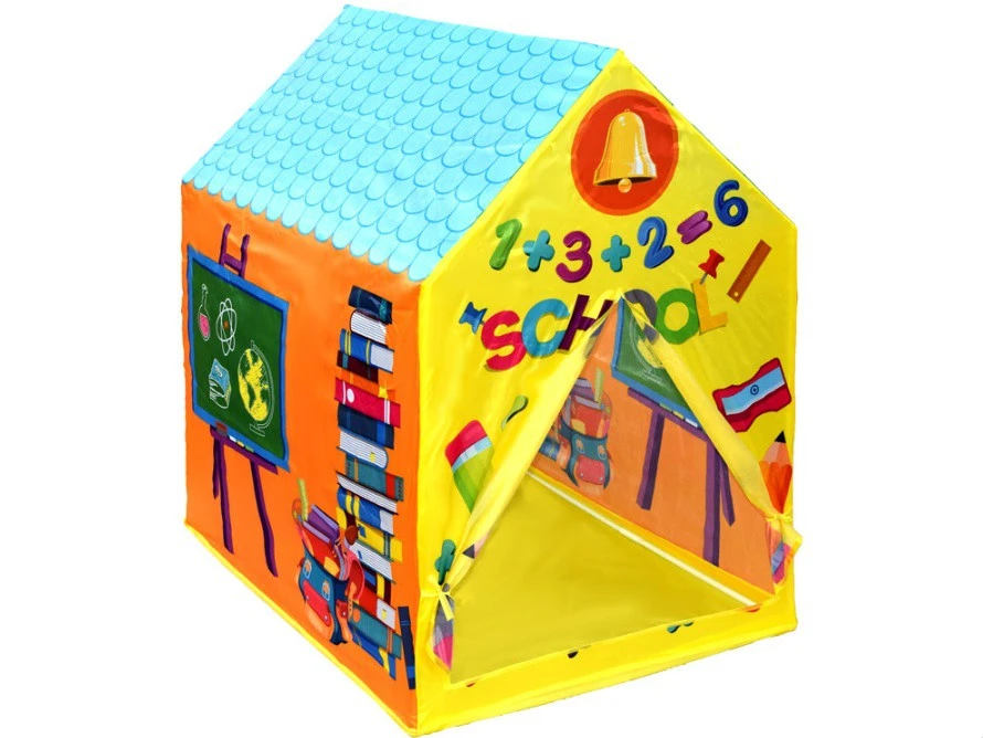 A színpompás iskolai mintás sátor minden gyerkőc kedvence lehet!A sátor kiváló játék kültérre és beltérre egyaránt,anyagának köszönhetően ellenáll az esőnek és könnyen tisztítható.A sátor méretei: 103 x 69 x 93 cm