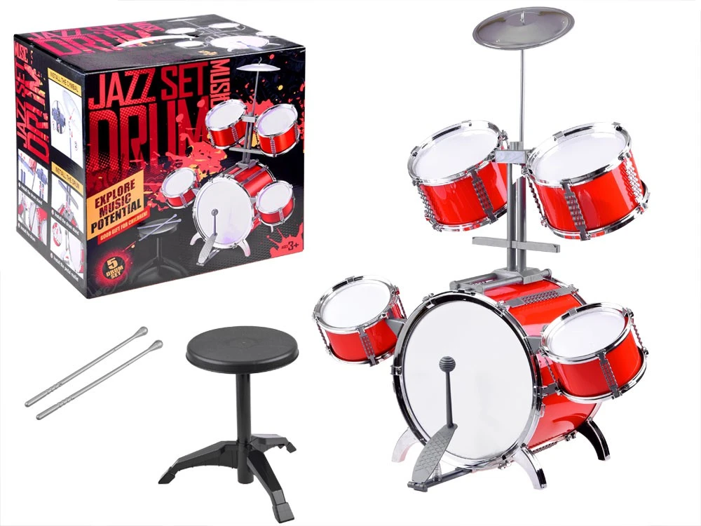 A nagy piros dob nagyszerű felszerelés egy dobos karrierről álmodozó gyermek számára.A dob szett mindent tartalmaz, ami a játékhoz kell: tányér, dobok, botok és kis szék. Az intenzív piros színű, szürke elemekkel és fehér dobmembránnal készült játék biztosan tetszeni fog minden kis zenésznek. Az egész nagyon körültekintően, minden részletre odafigyelve műanyagból készült, ami nagyon élethűvé teszi a megjelenést, a dobok oldalai rugalmas műanyagból készültek. A cintányérok alumíniumból készültek, hogy valósághűbbé tegyék a hangzást. A dob segít gyermeke zenei képességeinek, ritmusérzékének fejlesztésében és az energia pozitív felhasználásában.A készlet tartalma: