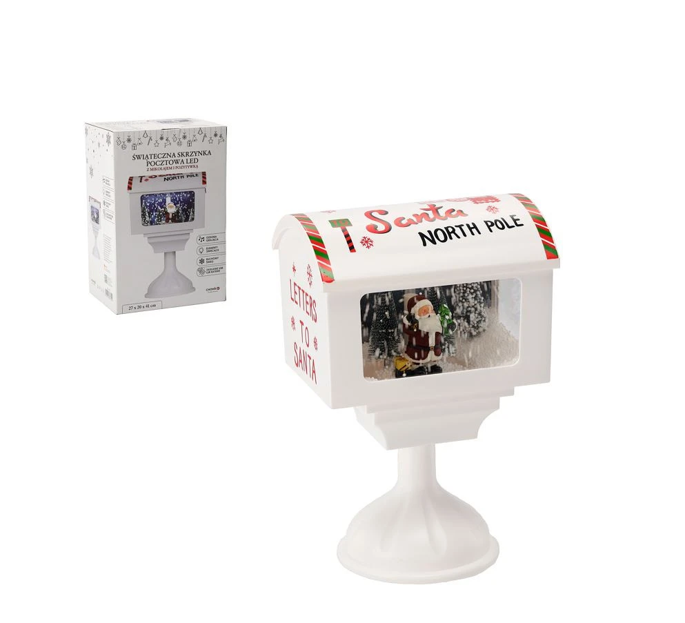 Tedd varázslatossá a karácsonyi ünnepeket ezzel a gyönyörű fehér karácsonyi postaládával, amely egy szép Mikulásos mintával és LED világítással rendelkezik! Ez a karácsonyi postaláda nemcsak dekorációként szolgál, hanem ünnepi hangulatot varázsol otthonodba, kiegészítve a fényekkel és zenével. A Mikulás jelenléte garantáltan elhozza a karácsonyi csodát a család minden tagjának!Jellemzők:Méret: 27 cm magas, 20 cm széles és 41 cm hosszúAnyag:műanyagFényforrás: LED világítás, amely különleges fényt ad az ünnepi dekorációnakDekoráció: Fehér Mikulás minta, tökéletesen illeszkedve az ünnepi hangulathozKapcsoló beállítások: A postaláda zenél és fénylik, így könnyen átalakíthatod az otthonodat egy karácsonyi varázslattá.Funkciók:FényekZenélő funkcióKarácsonyi hangulatIdeális ajándék: Tökéletes választás karácsonyi ajándéknak vagy ünnepi dekorációként.