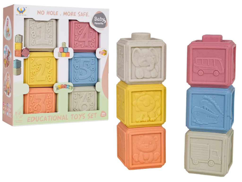 Környezetbarát, puha érzékszervi kockákból álló készlet hat hónapos kortól gyermekek számára. A változatos színek stimulálják a gyermekek érzékeit, a változatos formák pedig kreatív játékra ösztönöznek. Különböző textúráiknak köszönhetően minden kocka más érzékszervi élményt nyújt a gyermek számára. A kockák terápiás vagy oktatási célokra, vagy érzékszervi játékként is használhatók a gyermekek számára. Szerkezetüknek köszönhetően tökéletesen funkcionálnak rágókaként is.Készlet jellemzői:- hat hónapos kortól csecsemőknek,-különböző színek,- különféle textúrák,- serkenti a baba érzékszerveit,- babák számára biztonságos anyagokból készült,- megtanítja a számolást, a formák és színek felismerését.Méretek:- kb. 5 cm x 5 cm x 6 cm-es kockák.- csomagolás kb. 16,7 cm x 15 cm x 5 cm.