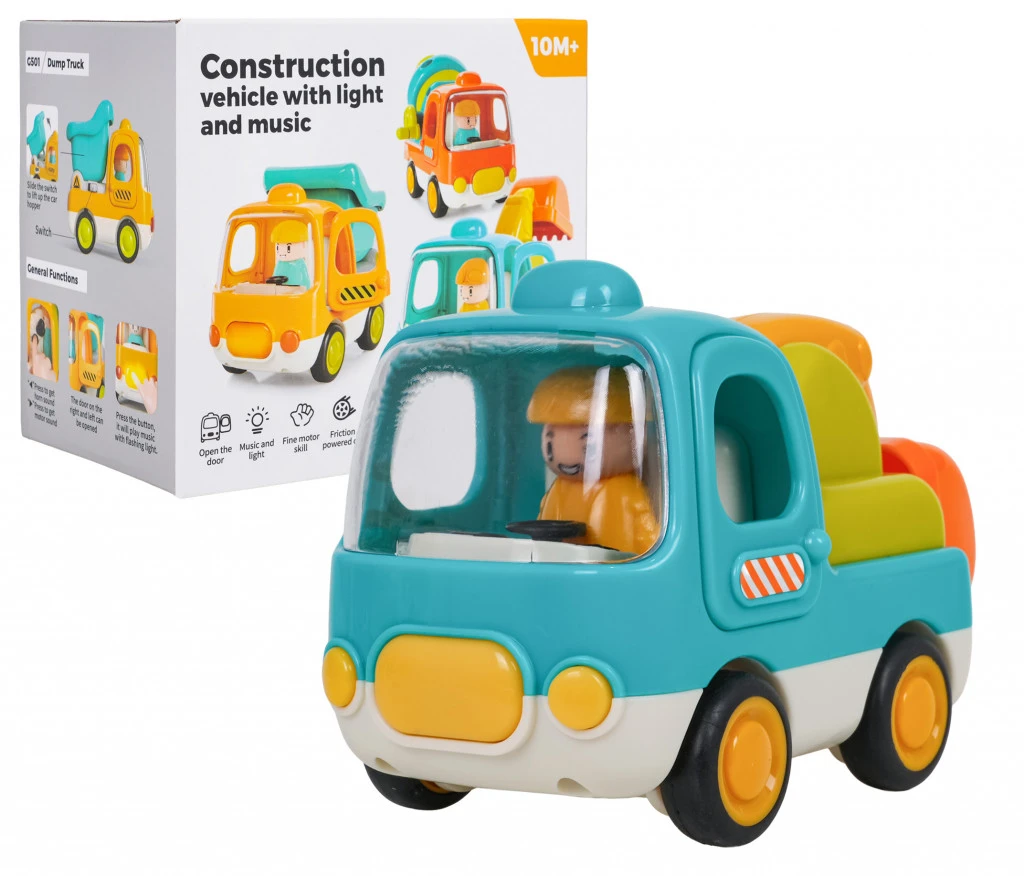 Interaktív kotrógép hang- és fényfunkciókkal tíz hónapos kortól gyermekek számára. Tartós és biztonságos műanyagból készült, nincsenek éles szélei, és a legenergikusabb játékot is kibírja. Az élénk színek vonzzák a baba figyelmét és játékra ösztönzik. A hang- és fényhatások stimulálják a baba érzékeit és valósághűvé teszik a játékot. A kerekek könnyedén siklik a talajon, a kotrógép ajtaja és vödörje pedig mozgatható. A játék 3 db AG13 elemmel működik (tartozék).Jellemzők:- tíz hónapos kortól gyermekek számára,- a játék a legjobb minőségű műanyagból készült,- hangeffektek: vidám dallamok (a jármű elején található gomb), járműindítási hang és kürt (gombok az utastérben),- fényeffektek: villogó gomb, amely dallamokat aktivál,- mozgatható elemek: fülke oldalsó ajtó, kotrógép gém és kanál(kar a jármű oldalán),- gumi kerekek,- súrlódó hajtás.Méretek:- autó kb. 13 cm x 6,5 cm x 8,5 cm,- csomagolás kb. 12,5 cm x 11 cm x 8 cm
