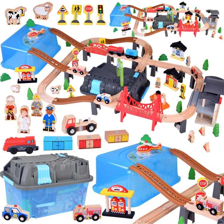 A fából készült vonat tömbkészlettel egy teljes világ, tele szórakozással és kreativitással! A készlet gazdagon fel van szerelve 100 elemmel, melyben hidak, alagutak, vasútállomások, járművek, valamint ember- és állatfigurák találhatók. Az egész lehetővé teszi, hogy saját várost alkosson vasúti útvonallal, látványos részletekkel diverzifikálva, például repülőteret helikopterrel. Minden elem fából készült, így a készlet tartós és biztonságos a gyermekek számára.Város építése: A készlet különféle fakockákat tartalmaz, amelyek szabadon kombinálhatók, így házakat, üzleteket és egyéb épületeket hozhat létre. A pasztell színek bájt varázsolnak és kreatív játékra ösztönöznek.Pálya: A várost pályahálózat veszi körül, lehetővé téve a gyerekeknek, hogy útvonalakat tervezzenek és saját történeteket alkossanak. A mozgó vonat utasokat és árukat szállíthat, valósághűbbé téve a játékot.Akkumulátoros szerelvény: Akkumulátoros (1,5 V AA), a vonat simán halad a vágányokon, vezetés közben fényben izzik, felejthetetlen élményeket nyújtva és fejleszti a gyermek fantáziáját.Funkcionális csomagolás: A műanyag doboz kettős funkciót lát el ndash; városdíszítést és kényelmes helyet biztosít a blokkok és tartozékok tárolására és szállítására.Ökológiai kidolgozás: Minden elem természetes fából készült, biztonságos festékekkel festve pasztell színűre. Ez a műanyag játékok tartós és környezetbarát alternatívája.Ajándékba is tökéletes: A quot;Város vágányokkal és vonattalquot; készlet remek választás a vonatok és a kreatív építkezés minden kis szerelmese számára. Hagyja, hogy gyermeke felfedezze a vasúti kalandok és a kreatív játék korlátlan lehetőségeinek világát!A készletben lévő járművek: