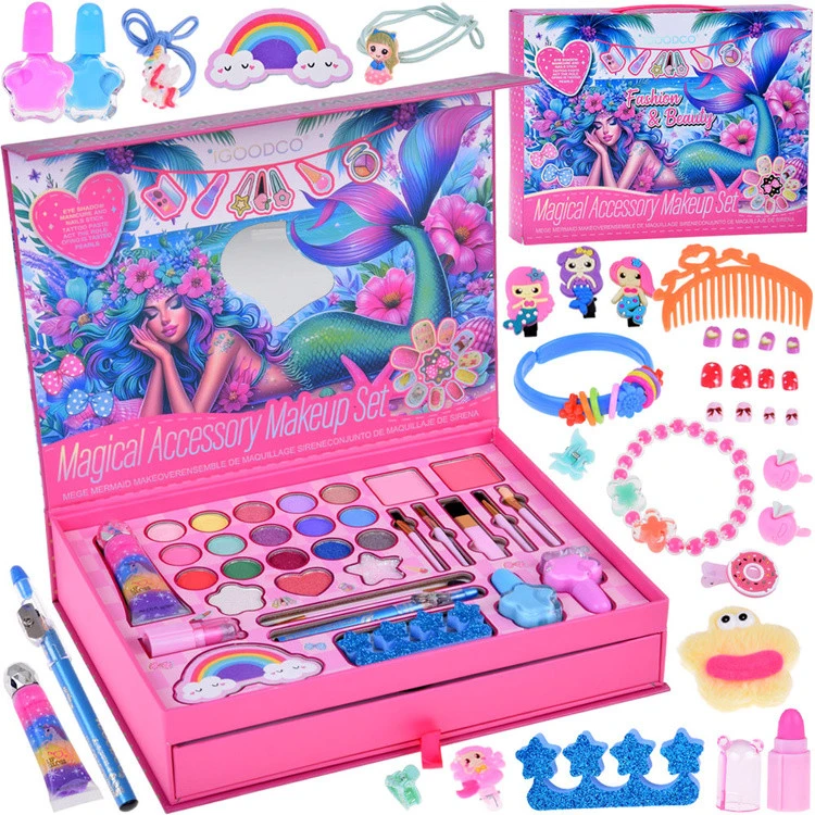 – 1 db gyöngyös karkötőA nagyobb kényelem érdekében a doboz beépített tükröt is tartalmaz, így a kis fodrászod megcsodálhatja mesés alkotásait.Ha egy olyan ajándékról álmodozol, ami már az első pillantásra elvarázsol és örömet okoz minden kislánynak, ez a készlet tökéletes választás! Ideális ajándék születésnapra, ünnepekre, gyereknapra, vagy egyszerűen csak egy kellemes meglepetés minden alkalomra.A csillogó sellő mintás piperetáska a színek, a smink és a szépség varázslatos világának minden szerelmese számára valóra vált álom. Nem csak egy játék, hanem egy kreatív játékra való meghívás is, amely fejleszti a képzeletet, a kézügyességet, és lehetővé teszi, hogy igazi hercegnőnek érezd magad!