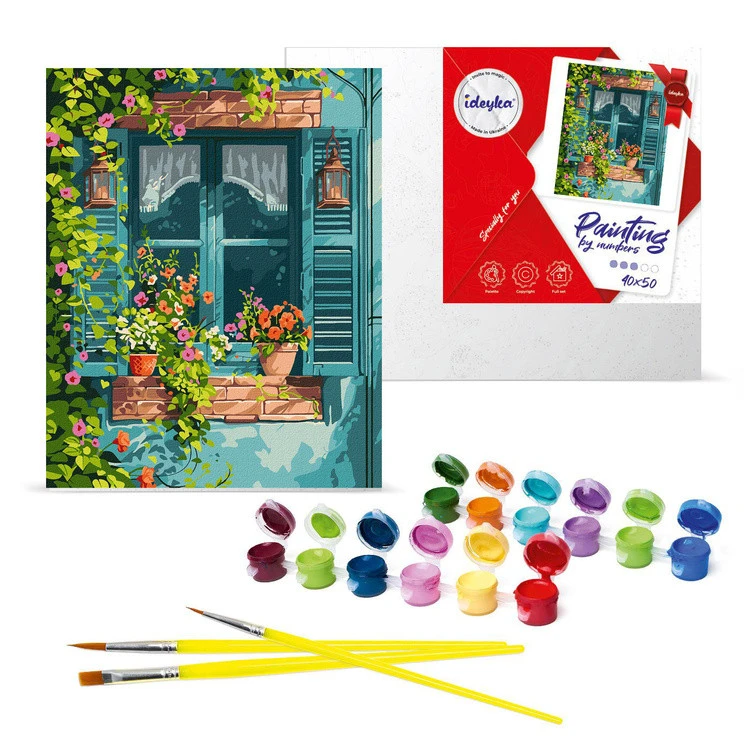 Ház a kertben- vászonképAz ilyen festményekkel a festés könnyűvé válik. Ez egy izgalmas játék, aminek köszönhetően te magad is lenyűgöző remekművet alkothatsz!Még akkor is, ha először csinálod. Nagyon egyszerű, a festék színének megfelelő számozott kontúrok mentén kell festened(a tartály fedelén található szám). Csak óvatosan fesd meg a kontúrokat, és egy igazi kép kezd kialakulni. Az ilyen festés jótékony hatással van a hangulatra és a kreatív fejlődésre. Remekül működik kreatív kikapcsolódásként. A kész kép a falra akasztható és megcsodálható