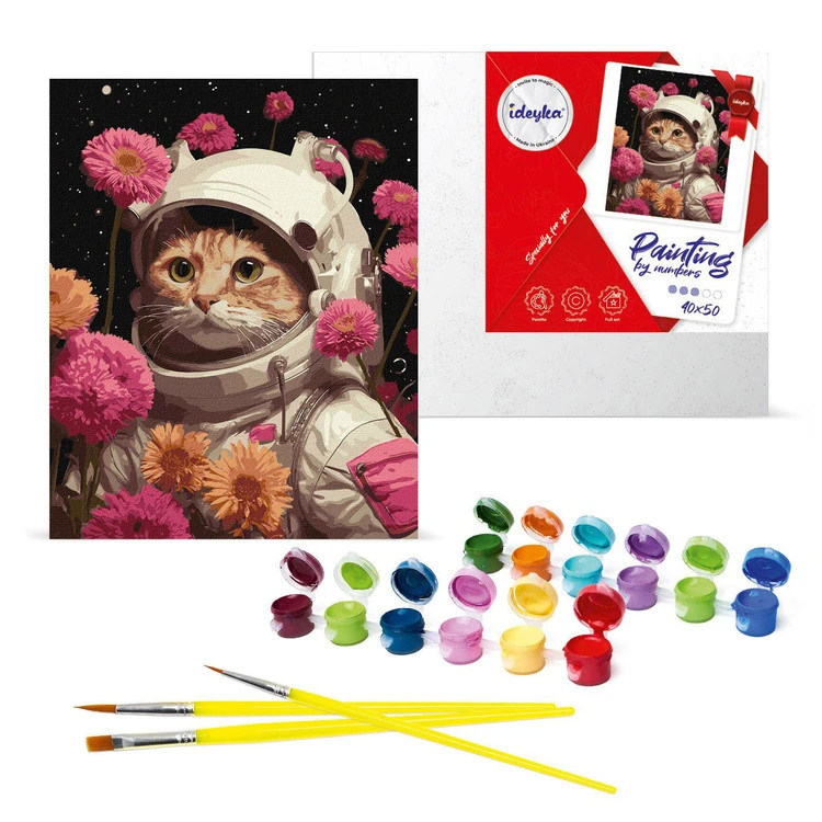 Macska expedícióvászonképAz ilyen festményekkel a festés könnyűvé válik. Ez egy izgalmas játék, aminek köszönhetően te magad is lenyűgöző remekművet alkothatsz!Még akkor is, ha először csinálod. Nagyon egyszerű, a festék színének megfelelő számozott kontúrok mentén kell festened(a tartály fedelén található szám). Csak óvatosan fesd meg a kontúrokat, és egy igazi kép kezd kialakulni.A készlet tartalma:natúr vászon3 nejlon ecsetszámozott környezetbarát akrilfesték palettaellenőrzőlap (papír vagy QR-kóddal)Az ilyen festés jótékony hatással van a hangulatra és a kreatív fejlődésre. Remekül működik kreatív kikapcsolódásként. A kész kép a falra akasztható és megcsodálható.