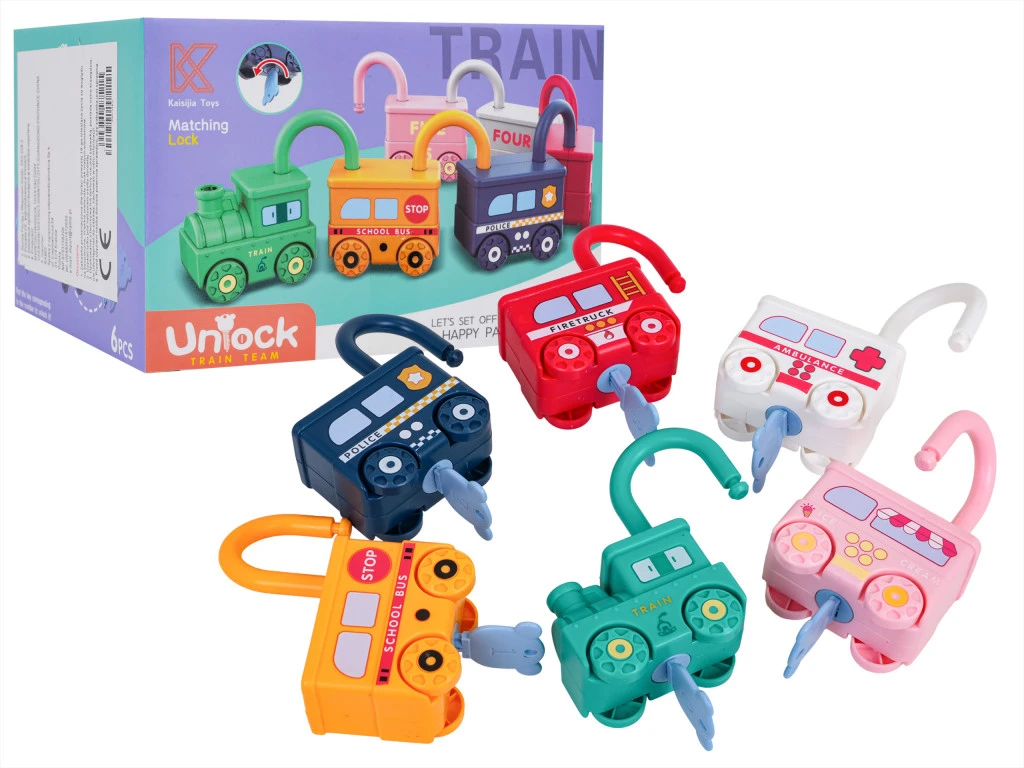 Egy oktató jellegű, színes vonat színes lakatkocsikkal tizennyolc hónapos kortól kisgyermekek számára. A legkiválóbb minőségű anyagokból készült, biztonságos a kisgyermekek számára, ez a készlet ötvözi a szórakozást és a tanulást. A készlet hat különböző járművet tartalmaz: mozdonyt, iskolabuszt, rendőrautót, tűzoltóautót, mentőautót és fagylaltos kocsit. A mozdony és a kocsik0-tól 5-ig terjedő számokkal és a járművek angol nevével vannak jelölve (Vonat, Iskolabusz, Rendőrség, Tűzoltóautó, Mentőautó, Fagylalt). Ez segít a gyerekeknek a számok és szavak angol nyelvű elsajátításában. Minden kocsi alján kulcslyuk található, a készlet pedig hét kulcsot tartalmaz. Az egyik kulcs univerzális, és minden lakatot nyit, míg a többi egy adott járműhöz van rendelve. A kulcsok számokkal vannak jelölve, akárcsak a járművek, ami segíti a gyerekeket a logikus gondolkodás fejlesztésében és az asszociációkra tanít. A lakat teteje 360 fokban elforgatható a nyitás után. Ennek köszönhetően a kocsik összekapcsolhatók, hogy színes vonatot hozzanak létre.Jellemzők:- tizennyolc hónapos kortól gyermekek számára,- a szett a legjobb minőségű anyagokból készült,- az élénk színek vonzzák a gyermek figyelmét és játékra ösztönzik,- a játék fejleszti a kézügyességet, a kreativitást és a képzelőerőt, megtanítja a párosítást, fejleszti a logikus gondolkodást,- a baba angolul tanul számokat és neveket.Méretek:- kulcs kb. 6,5 cm x 3,7 cm x 0,3 cm,- jármű kb. 7 cm x 6 cm x 3,7 cm,- mozdony vagonokkal kb. 52 cm x 9 cm x 4 cm,- csomagolás kb. 14,3 cm x 12,8 cm x 9,5 cm