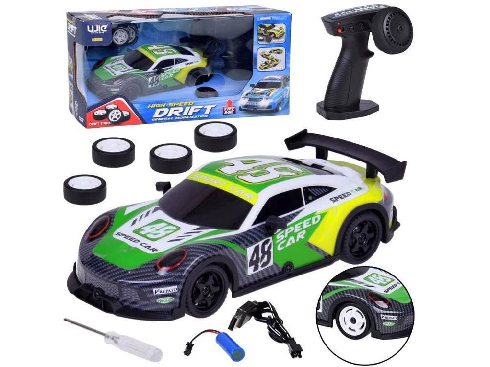 Távirányítós drift versenyautó pótkerekekkel -zöld-sárga
