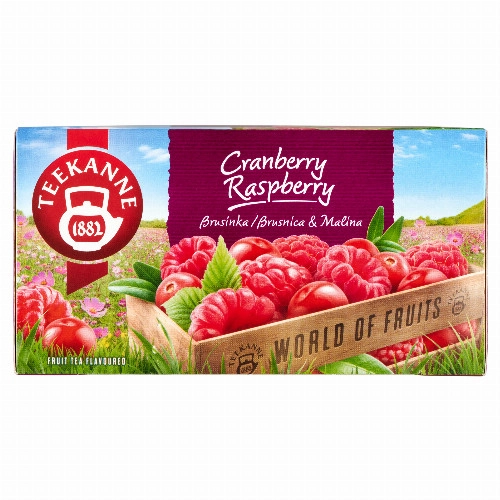 • Cranberry & Raspberry – vörös áfonya és málna ízesítésű egyedi gyümölcstea keverék. Élvezze a Teakanne World of Fruits „Cranberry & Raspberry” gyümölcsteájának friss, kiteljesedő ízét, mely kivételesen zamatos íz-világát a természetes gyümölcsöknek, a friss vörös áfonya és az édes, nap érlelte málna ízének köszönheti. Forrón vagy hűtve mindig gyümölcsös ízélmény fiatalnak és idősnek egyaránt.