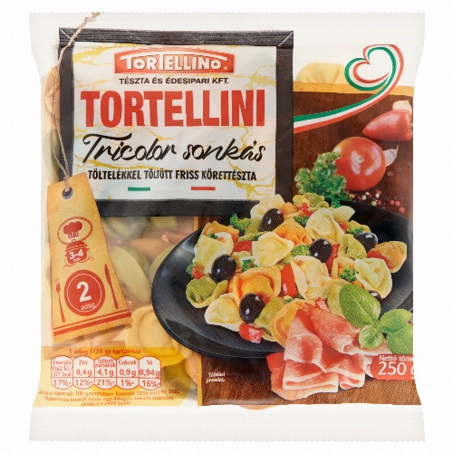 - Tortellini Tricolor sonkás, sonkás töltelékkel töltött friss tészta, védőgázas csomagolásban