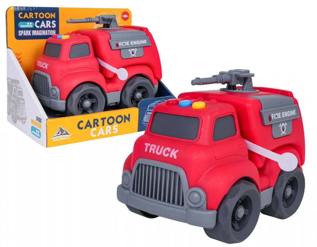 Interaktív tűzoltóautó tizennyolc hónapos kortól gyermekek számára. A játék a legmagasabb minőségű anyagokból készült, élénk színekkel és éles szélek nélkül. A hang- és fénygombok a tűzoltóautó tetején találhatók. Megnyomásukkal a járműre jellemző hangok aktiválódnak, beleértve a vezetést, az indítást és a tolatást. A gombok mellett vidám dallam és villogó fények is találhatók. A játék 4 db LR44 elemmel működik (tartozék).Jellemzők:- tizennyolc hónapos kortól gyermekek számára alkalmas játék,- a legjobb minőségű anyagokból készült,- az élénk színek játékra ösztönzik a gyerekeket,- hangeffektusok: a jármű indításának, vezetésének és tolatásának hangjai, vidám dallam,- fényeffektusok: villogó fények a jármű tetején,- mozgó elemek: a jármű hátsó ajtaja és egy emelő tűzoltótömlő,- az autónak nincsenek éles szélei, és teljesen biztonságos kisgyermekek számára,- ideális játék otthonra és homokozóba.Méretek:- tűzoltóautó kb. 16 cm x 13 cm x 11 cm,- csomagolás kb. 19,8 cm x 14,8 cm x 12 cm